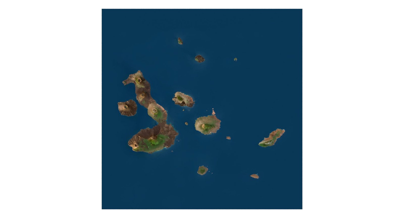 In addition to the 3D terrain model of the Galapagos Islands, you will also receive an elevation map, a normal map, satellite imagery, and other maps.
