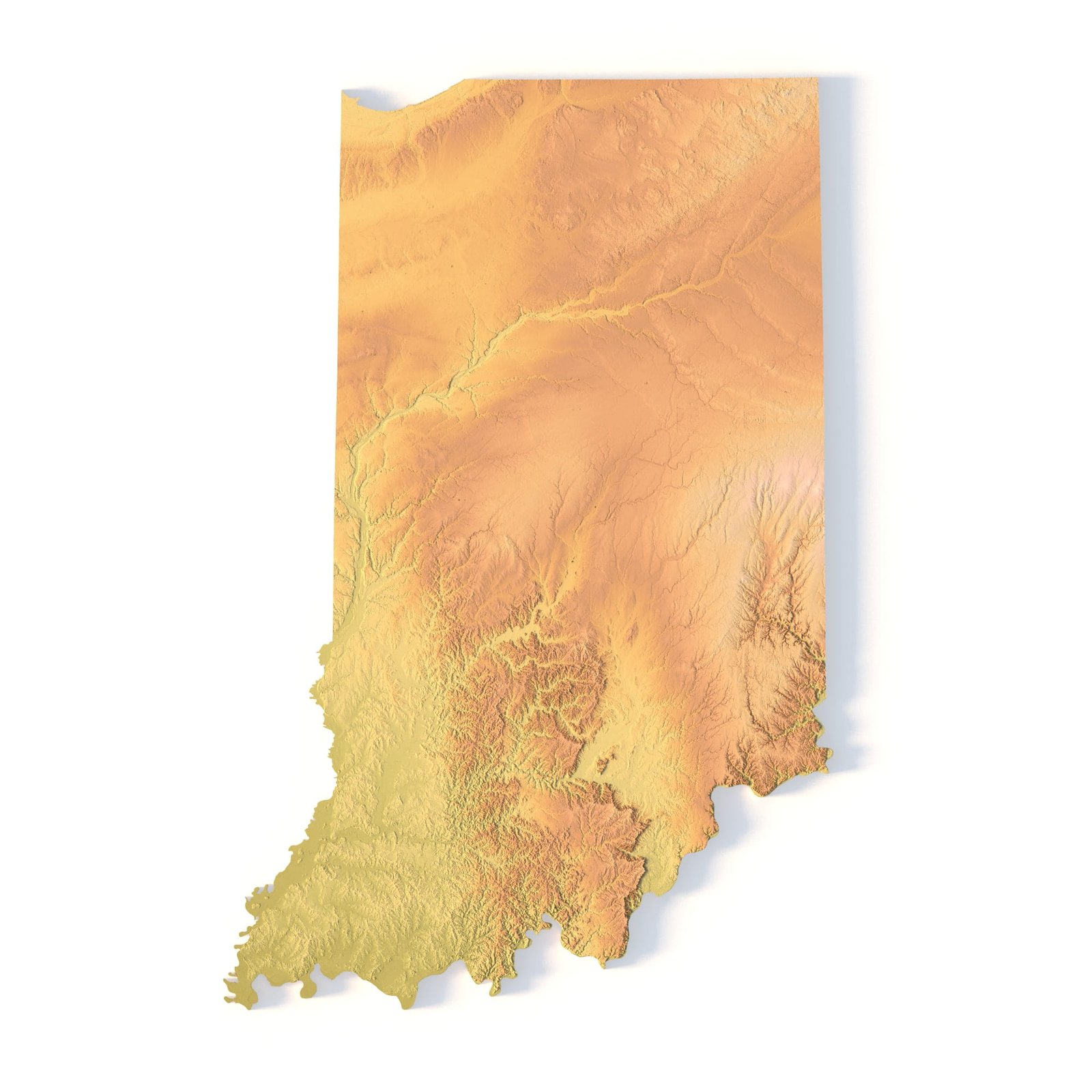 Indiana Topographic Map STL – High-Resolution 3D Terrain Model